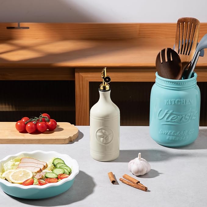 - Versatile & Practical - Sweejar ceramic oil bottle is made of high-quality, BPA-free thick ceramic, protecting fluids from heat, light and oxygen to maximize freshness. Ideal for storing various liquids like olive oil, vinegar, etc. It's widely used in kitchens, restaurants, bars and other places.