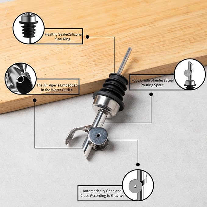 - Gravity-Powered Pouring - Featuring a gravity-activated spout, this olive oil dispenser bottle automatically opens when tilted for pouring and closes seamlessly when placed vertically, which is perfect for quick and controlled drizzling.