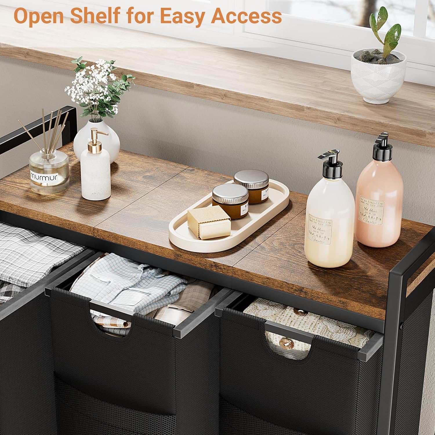 - Wide Tabletop Laundry Basket: This laundry hamper 3 section comes with a tabletop gives sufficient storage room to organize detergents or toiletries. This elevated design is also perfect for folding clothes and blankets, saving you from constant bending over.