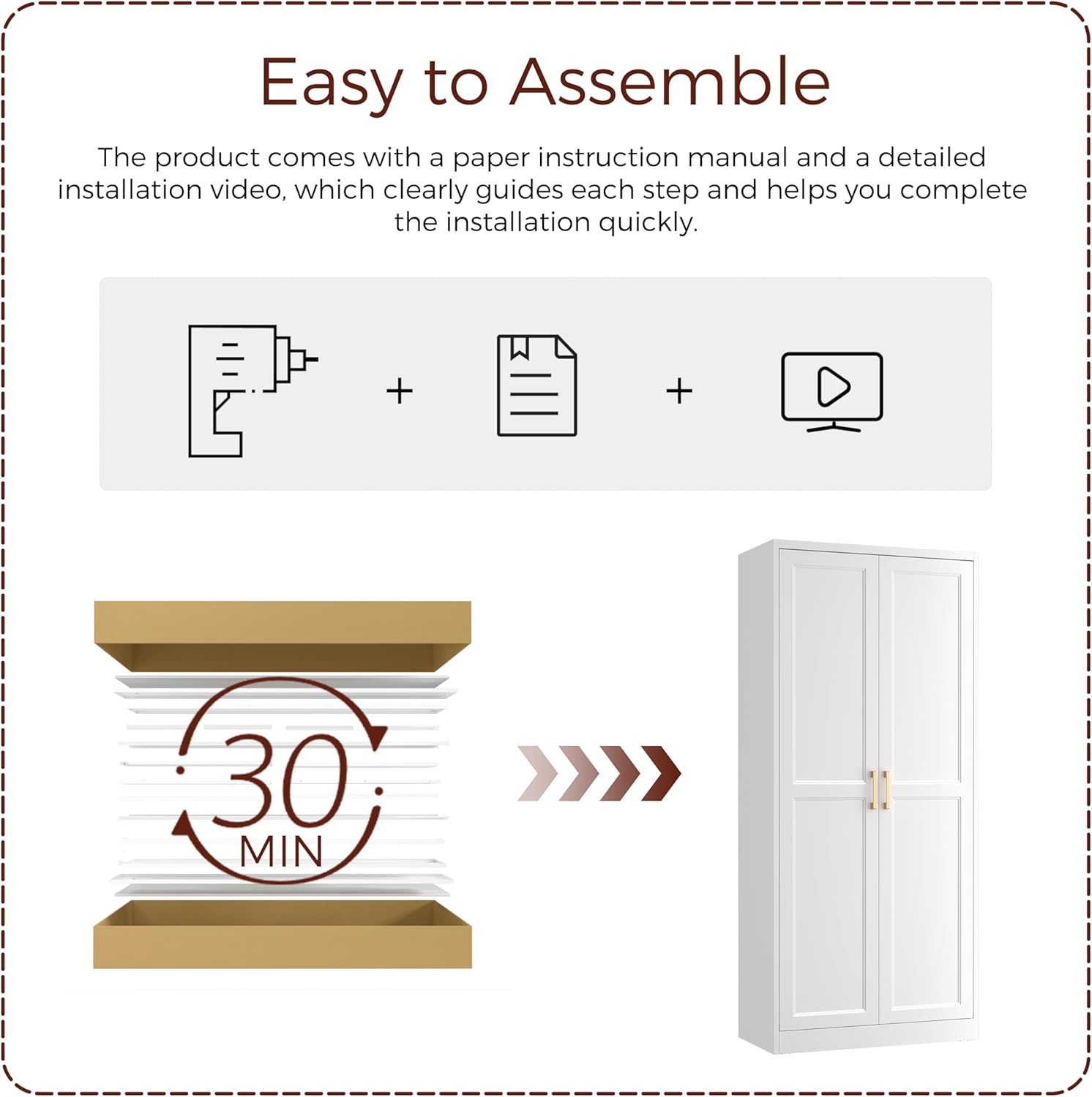 - 【Secure and Stable Design】 For added safety, the white pantry cabinets with doors and shelves includes an anti-tipping device and a wall anchor kit to prevent accidents. This secure design ensures stability, whether used in busy home environments or offices
