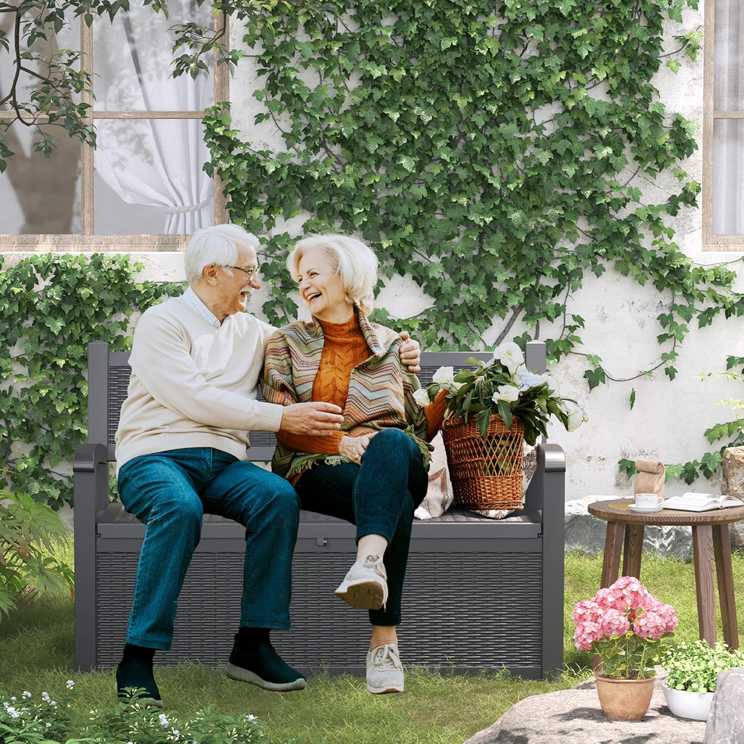 - Multi-functional Design - With its armrest bench design, this outdoor storage box doubles as a comfortable seating option for two people, making it perfect for gatherings and parties