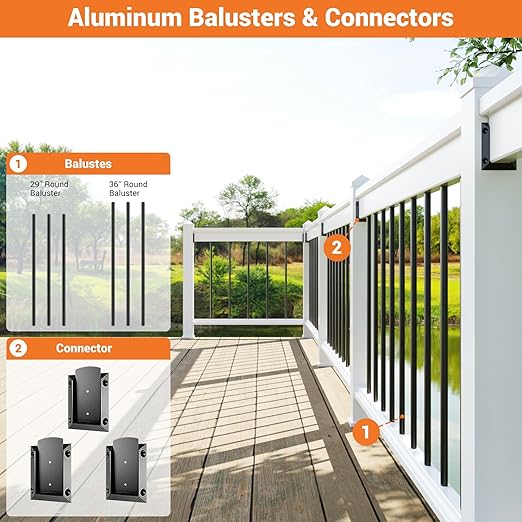 - Weather-Resistant and Low Maintenance: Featuring a black powder-coated finish, these aluminum railing balusters are waterproof, rust-proof, and designed to endure outdoor elements. Unlike iron balusters, they require minimal upkeep and are perfect for outdoor use.