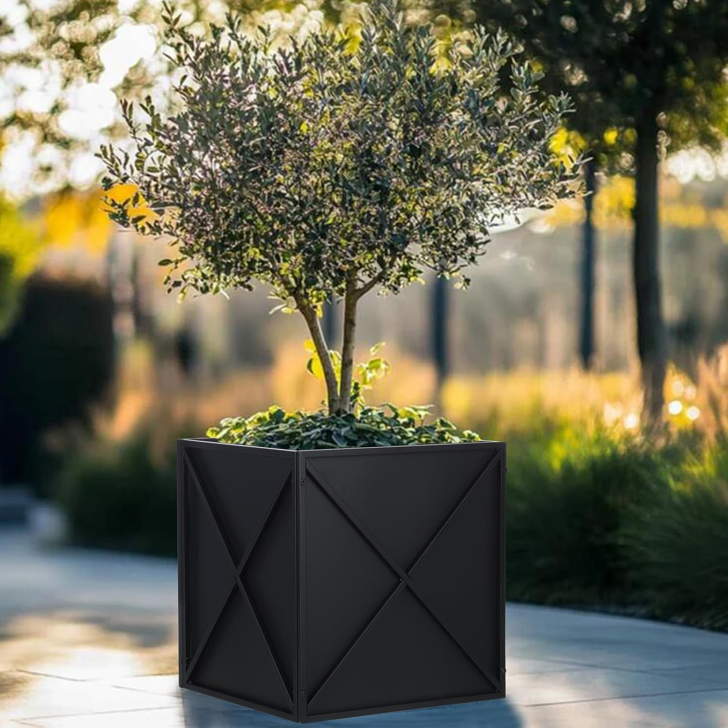 Metal Square Planter Box Tall Planters for Outdoor Plants Modern Heavy Duty with Drainage Holes for Outside Indoor Patio Deck - Black, 17”x 17”x 18”
