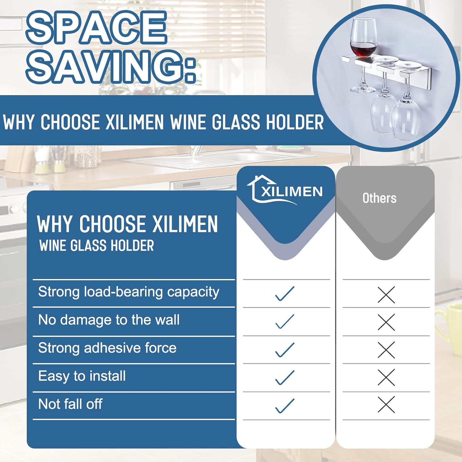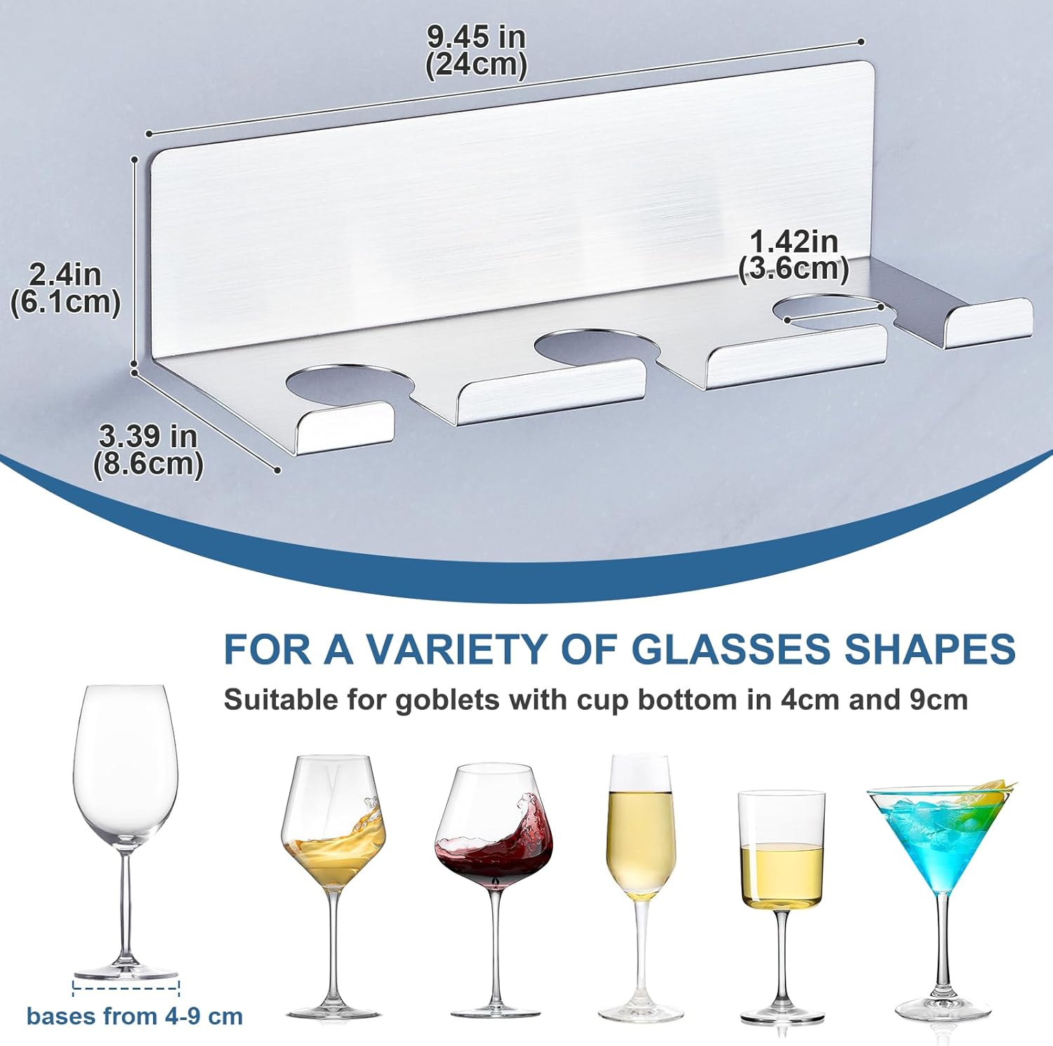 - EASY INSTALLATION: No more complicated installations. Wine glass rack with strong self-adhesive sticker, large adhesive surface, strong adhesion, suitable for smooth walls such as tile, marble, glass, wood and metal