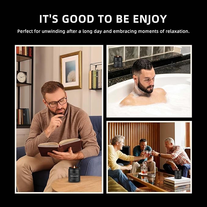 - Creating Relaxing Environment -- Scented candles can transform a space, creating an inviting and relaxing environment, which is equally important for men. After a long and hectic day, coming home to a soothing ambiance can greatly contribute to stress relief and overall well-being. Also can help men unwind and create a sanctuary where they can recharge and find tranquility.