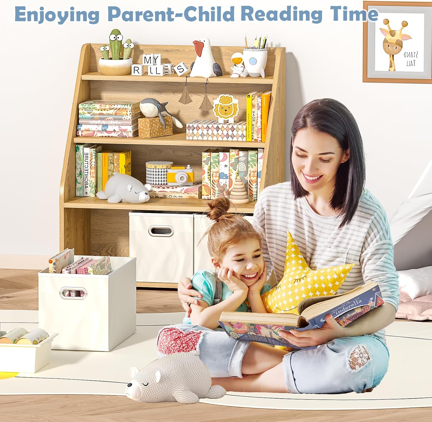 - 【2-IN-1 Kids Bookshelf and Toy Storage】This kids' bookshelf is just like a magical treasure chest. Its 3 tier wooden rack provides a cozy place for books, while the 3 removable fabric drawers serve as secret pockets for toys. It caters to kids, from curious toddlers taking their first steps into the world of play and learning, to older children with a growing collection of hobbies. They can neatly store their books, toys, pens, and other cherished items. Each time your child opens it, they are greeted by the magic of stories and playthings, unlocking the door to boundless imagination.