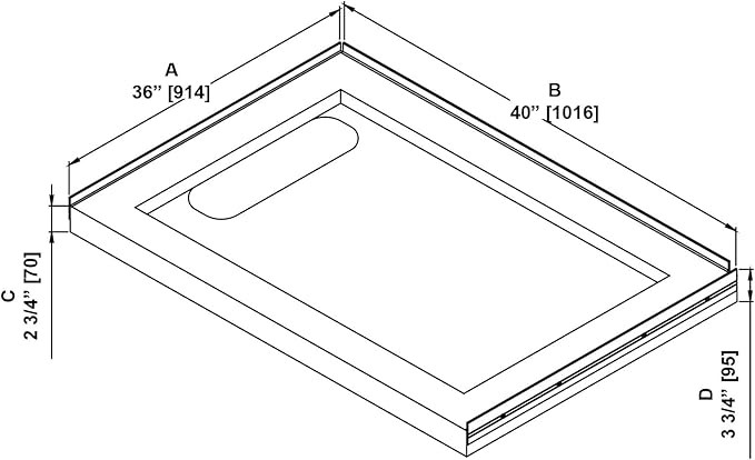 - Standard profile 2.8-in high rectangular base pan (40-in x 36-in) with hidden side drain