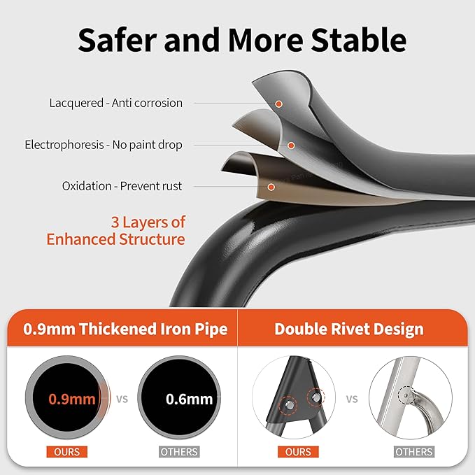 - Safety Upgrade: The 3 step ladder has a dual rivet design, reinforced steel bars at the bottom, and a secure locking mechanism with three safety latches. Press the top step to engage the safety lock automatically for stability and safety.