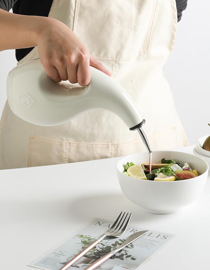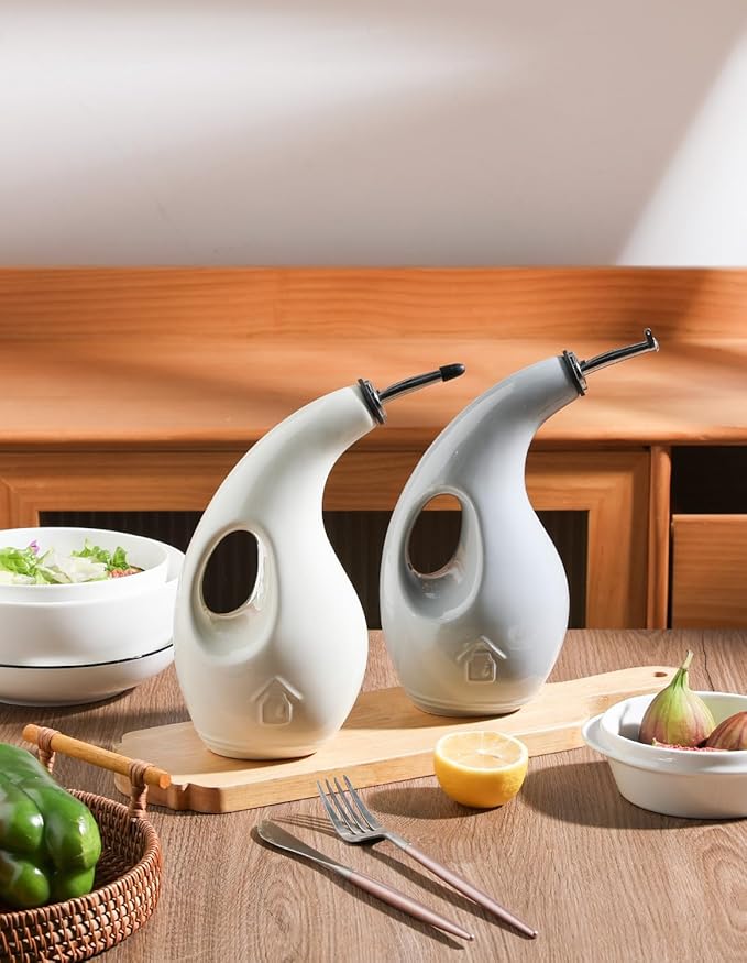 - Leak Proof & Keep Liquid Fresh - The bottle is made of durable ceramic that creates a smooth glaze. And the opaque porcelain bottle protects the oil from light and makes it last longer.
