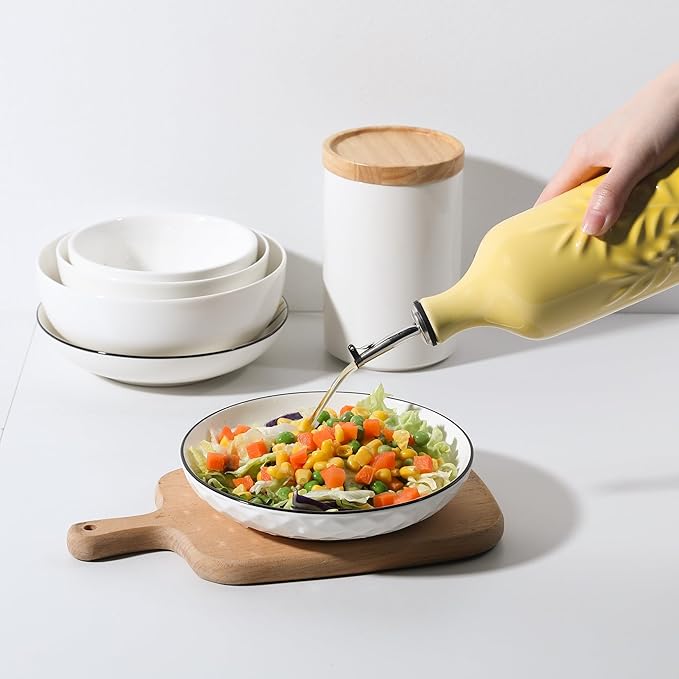 Sweejar Ceramic Olive Oil Dispenser Bottle, 20 Oz Relief Opaque Oil Cruet Protects To Reduce Oxidation, Suitable for Storage Soy Sauce, Coffee Syrup, Liquids, Set of 1 (Gradient Yellow)