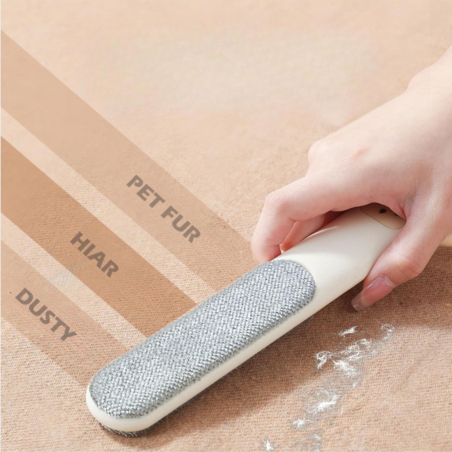 - 2. Dual sides powerful brush --- Brush surface with dual sides strong fiber gripping technology. When you touch it, you will find countless hooked fibers that tightly grip those dead-end pet hair.
