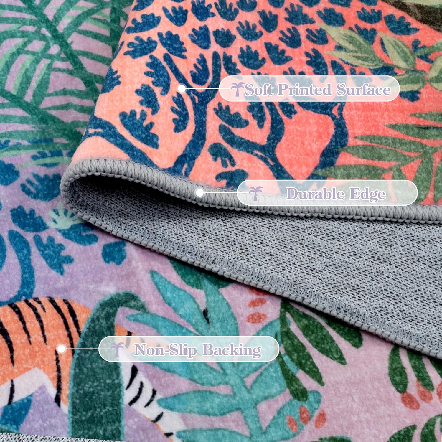 LIVEBOX Jungle Rug 9 x 12 Rug Purple Room Rugs for Bedroom, Soft Washable Area Rugs 9x12 Living Room, Modern Stain Resistant Floor Carpet Play Rugs for Kids Playroom Dining