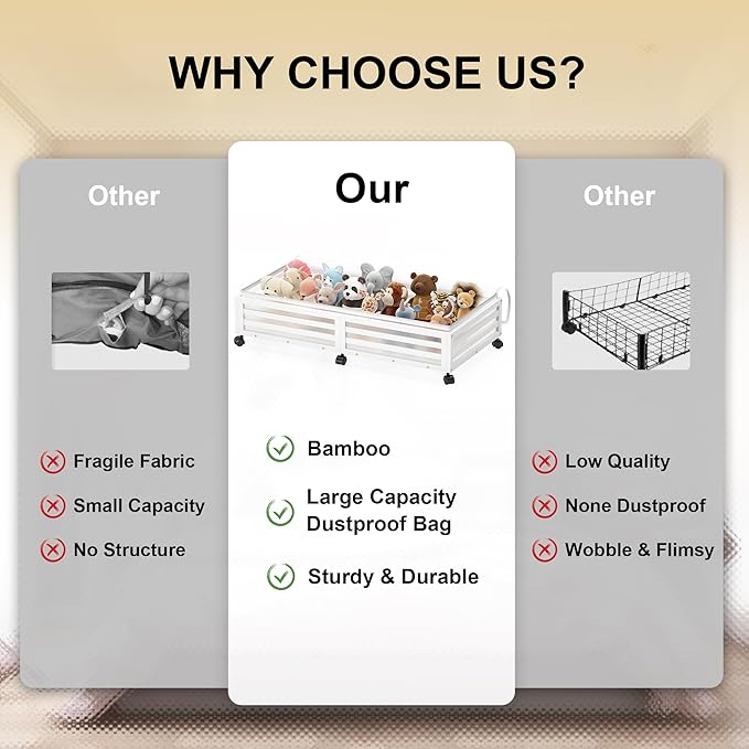 - 【360° Rotating Wheels】Features detachable wheels for easy sliding in and out from under the bed; convenient access in tight spaces