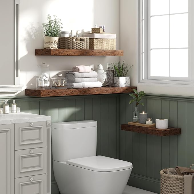 Heimlove 48" Floating Shelves for Wall,10 Deep Rustic Brown Wood Display & Storage Wall Shelves with Heavy Duty Brackets for Bathroom,Bedroom,Kitchen,Living Room,Office
