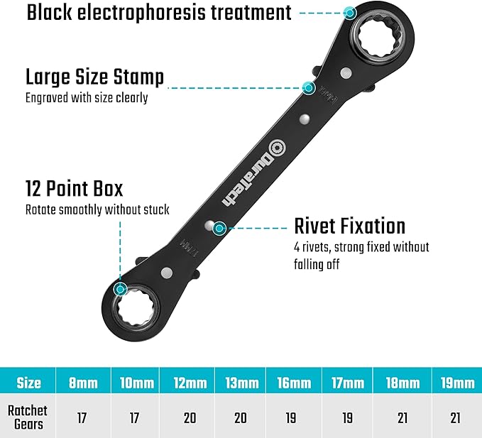 - HIGH QUALITY & RELIABILITY: Reversible ratchet wrench set, manufactured with carbon steel+A3 steel and sandblasting finish, surface black electrophoresis treatment for rust resistance