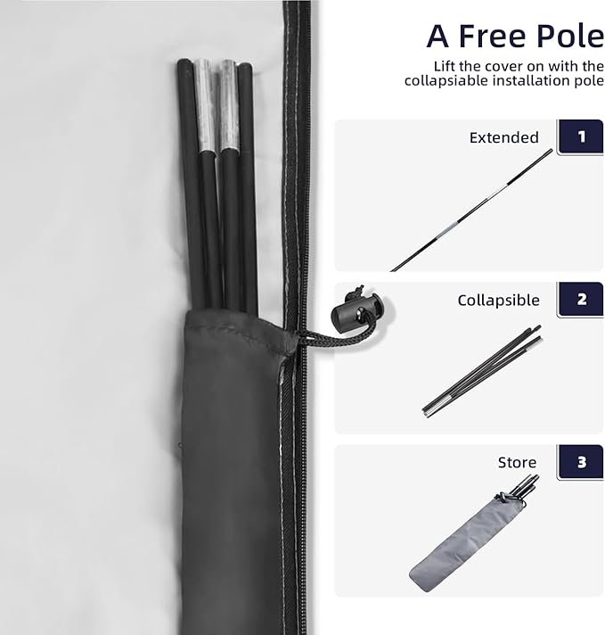 - Easy to Use & Clean: Featuring a simple slip-on design, this cover is effortless to put on and remove with pole. The smooth surface allows for easy cleaning—just wipe with a damp cloth or hose it down.