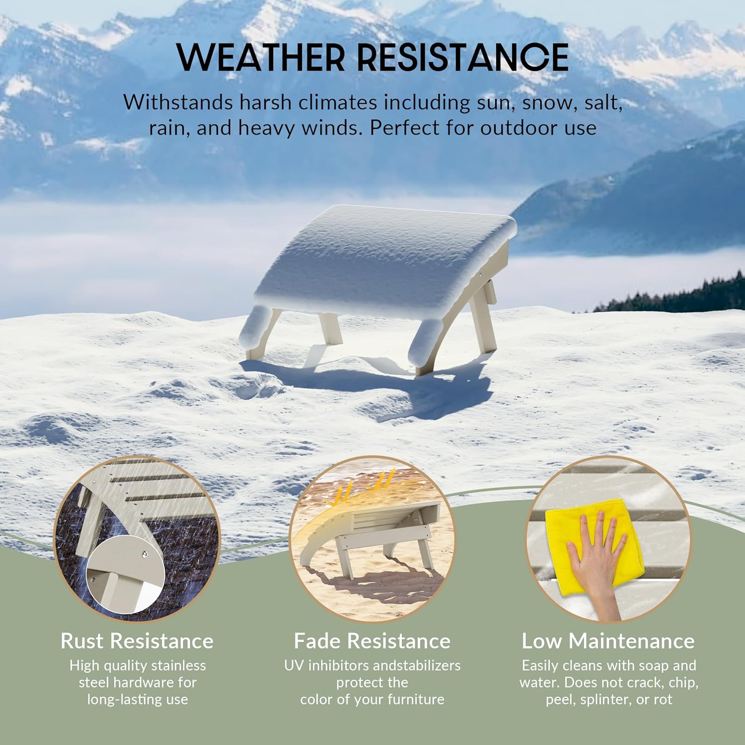 - All Weather Resistant: This Adirondack foot rest are made of HDPE plastic, its weather resistant and UV fade resistant material can withstand in various enviromental pressure and not easy to dent, crack , peel or rot as wood.