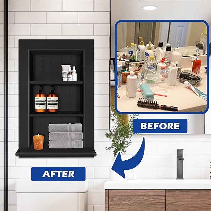 - 【Versatile Storage for Any Room】Ideal for the bathroom, living room, bedroom, hallway, or entryway, this multi-functional niche provides the wonderful space to store and display your essentials. Use it to organize toiletries, showcase decorative accents, or keep frequently used items within easy reach—adding both style and convenience to your home.