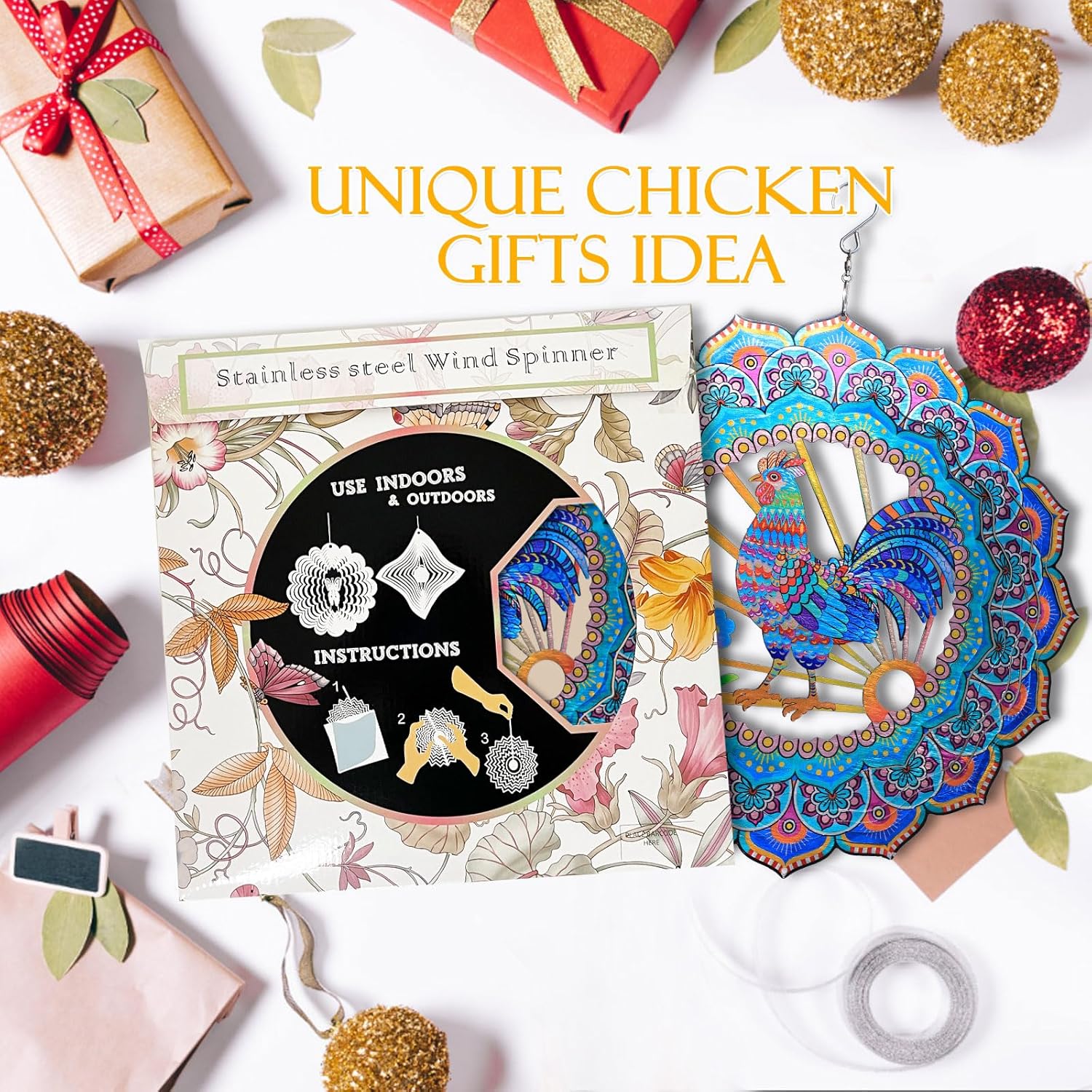 - ★【Unique Chicken Gifts Idea】For this garden decor hanging wind spinner,we not only designed exquisite colorful gift box packaging for this product,but also hollow out design in the middle of our gift box,which is more convenient to distinguish product what you buy!As a unique chicken gifts for women,mother,father,men,neighbors,friends,etc.Suitable for all occasions,like birthdays,Engagement,Wedding,Mother's Day,New Year,Anniversary,Father's Day,housewarming,Valentine's Day,Thanksgiving Day,Christmas etc.