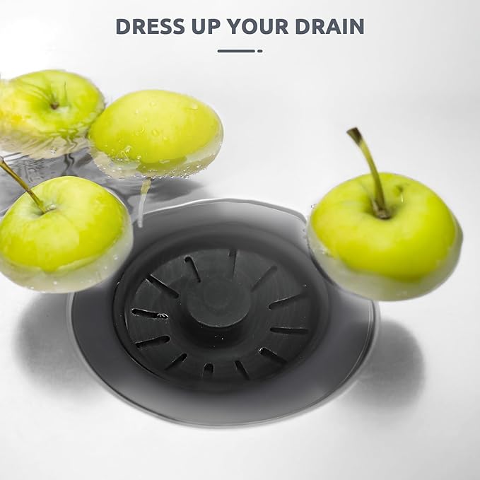 - 【Convenient 3-in-1 Design】Kitchen sink strainer and stopper combines water storage, drainage and debris filtration in one unit. Easily catches food debris and prevents forks, jewelry and other non-food related items from slipping into the disposal unit as it drains.