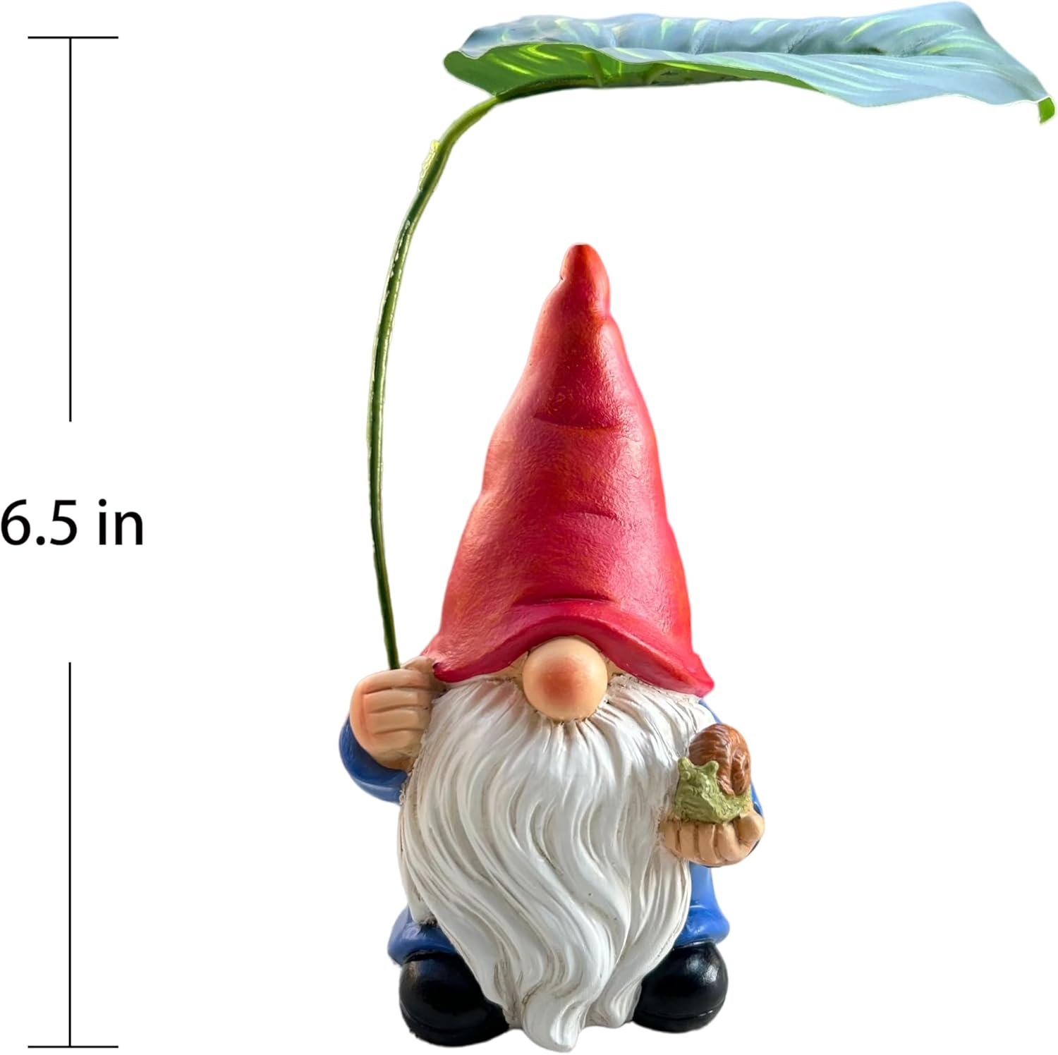 Garden Gnome Statue Decoration with Leaf Umbrella, 6.5” Figurine Ornament for Indoor Outdoor Home Patio Yard Lawn, for Gnome Lovers & Garden Enthusiasts,Mom,Women