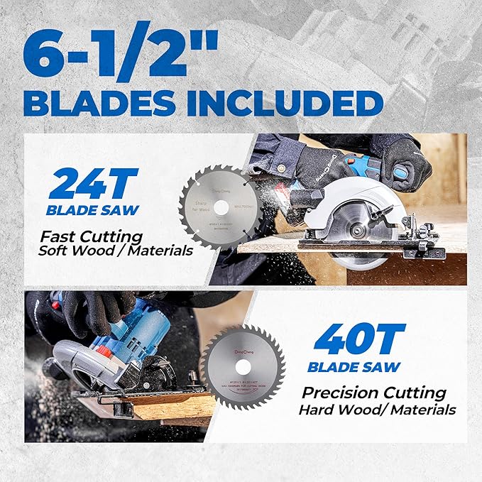 - Complete Kit with Accessories: Includes a 20T and 40T wood-cutting blade, a parallel guide for straight cuts, and a dust collection adaptor, providing everything needed for efficient and precise cutting right out of the box.