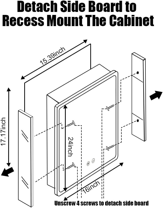 - [Detachable Side Plate for Recess Mount or Surface Mount]Designed for versatility, this mirror cabinet can be installed either recessed or surface-mounted, catering to your specific space and design preferences. Whether you want a flush, streamlined look or a more prominent, accessible placement, this cabinet adapts to your needs