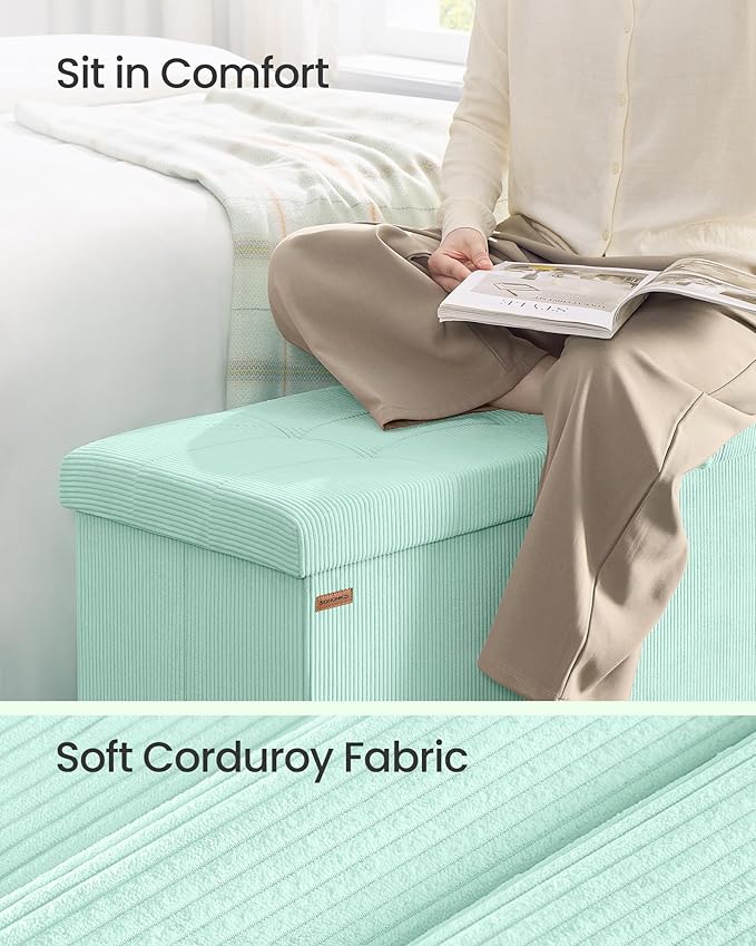 SONGMICS MAZIE Collection - Storage Ottoman Bench, Foldable Foot Rest, 15 x 43 x 15 Inches, End of Bed Bench, Storage Chest, Load 660 lb, Living Room, Bedroom, Entryway, Moonlight Green ULSF604C01