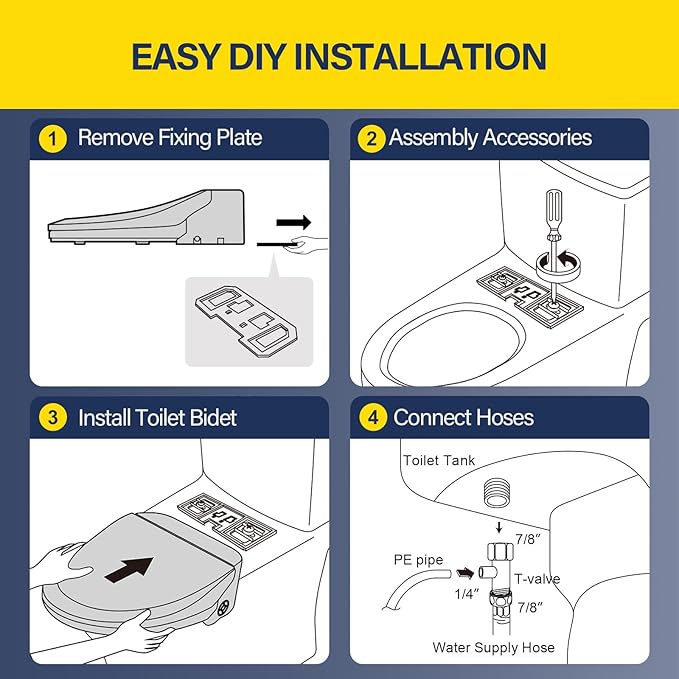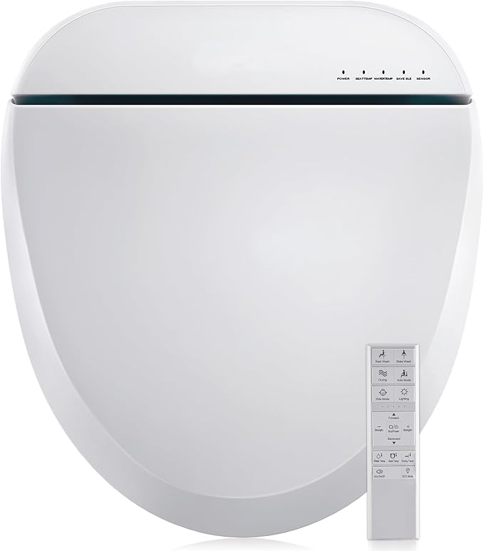 - [Humanized Details] Smart toilet seat with LED night light,heated toilet seat, quietly closing lid, stainless steel spray rod, and energy-saving mode
