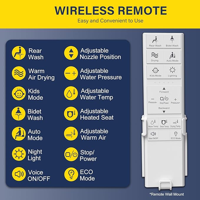 - [Wireless Control] The easy-to-use wireless remote control provides you with complete control, ensuring a clean, comfortable, personalized washing and user experience