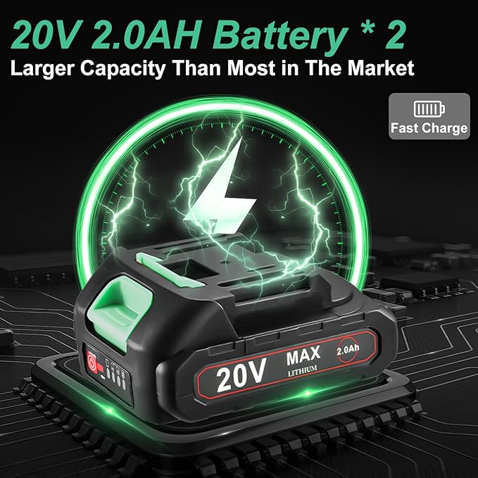 - *LONG-LASTING POWER* - The set includes two 20V 2.0AH Li-ion batteries and a fast charger, allowing for extended use with continuous power supply and quick recharge cycles.