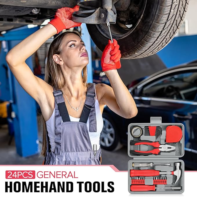 - Flawless Gift for DIYers: Whether you’re looking for a tool set for women just starting out with DIY or a seasoned handyman in need of a reliable tool kit, this 24-piece basic tool kit is an ideal gift. Compact, portable, and filled with quality essentials, it's a great toolkit for any new homeowner or someone looking to upgrade their repair gear. ideal for both house tool kit set and starter tool kit buyers