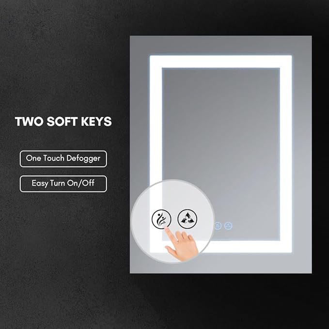 - Long-Lasting & Premium Build: Built for durability, this medicine cabinet mirror features LED lights with a 50,000-hour lifespan for years of reliable use. The doors with soft-close hinges and concealed finger-pull minimize noise and prevent slamming. With a 100,000 switch touch lifespan, the bathroom wall cabinet ensures long-term functionality and ease of use.