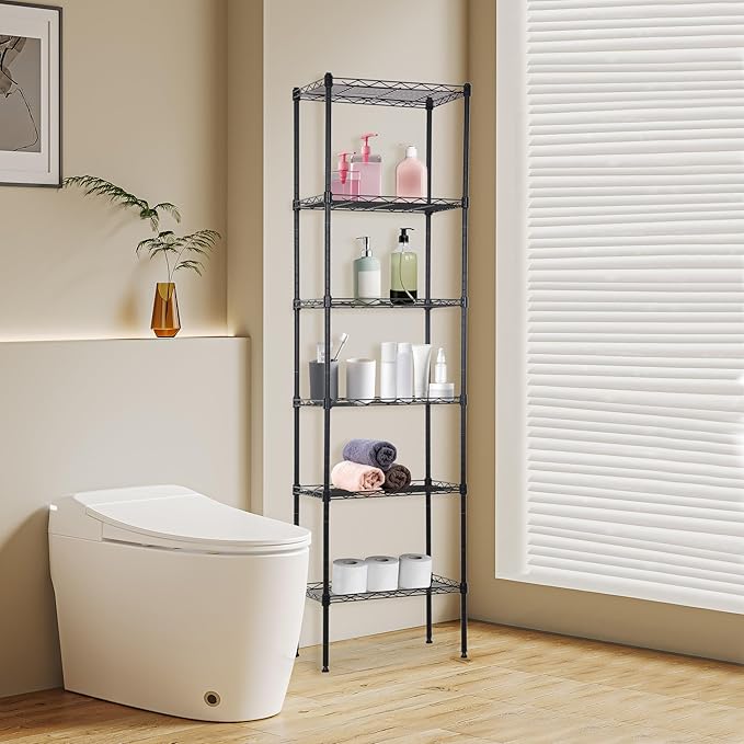 BestOffice | 6-Tier Wire Storage Shelves | 17x12x64 | Black | with Adjustable Racks | Heavy-Duty Metal Shelf, Holds Upto 600 lbs | No-Tool Assembly | Ideal for Home & Garage Shelving