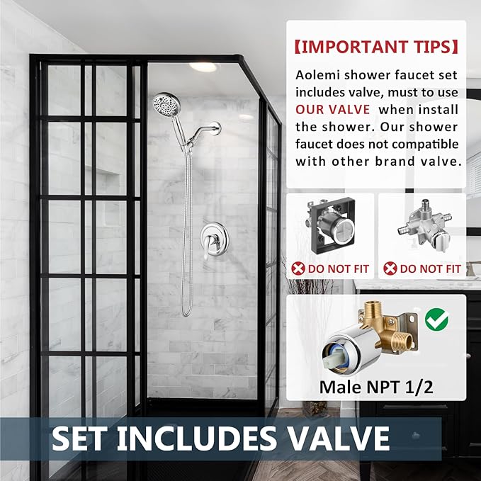 - 【IMPORTANT WARNING】: Not compatible with your existing fixtures/plumbing. The old shower valve and trims must be removed before installing our Aolemi shower kit. Check installation needs; wall opening or plumbing changes may be required.