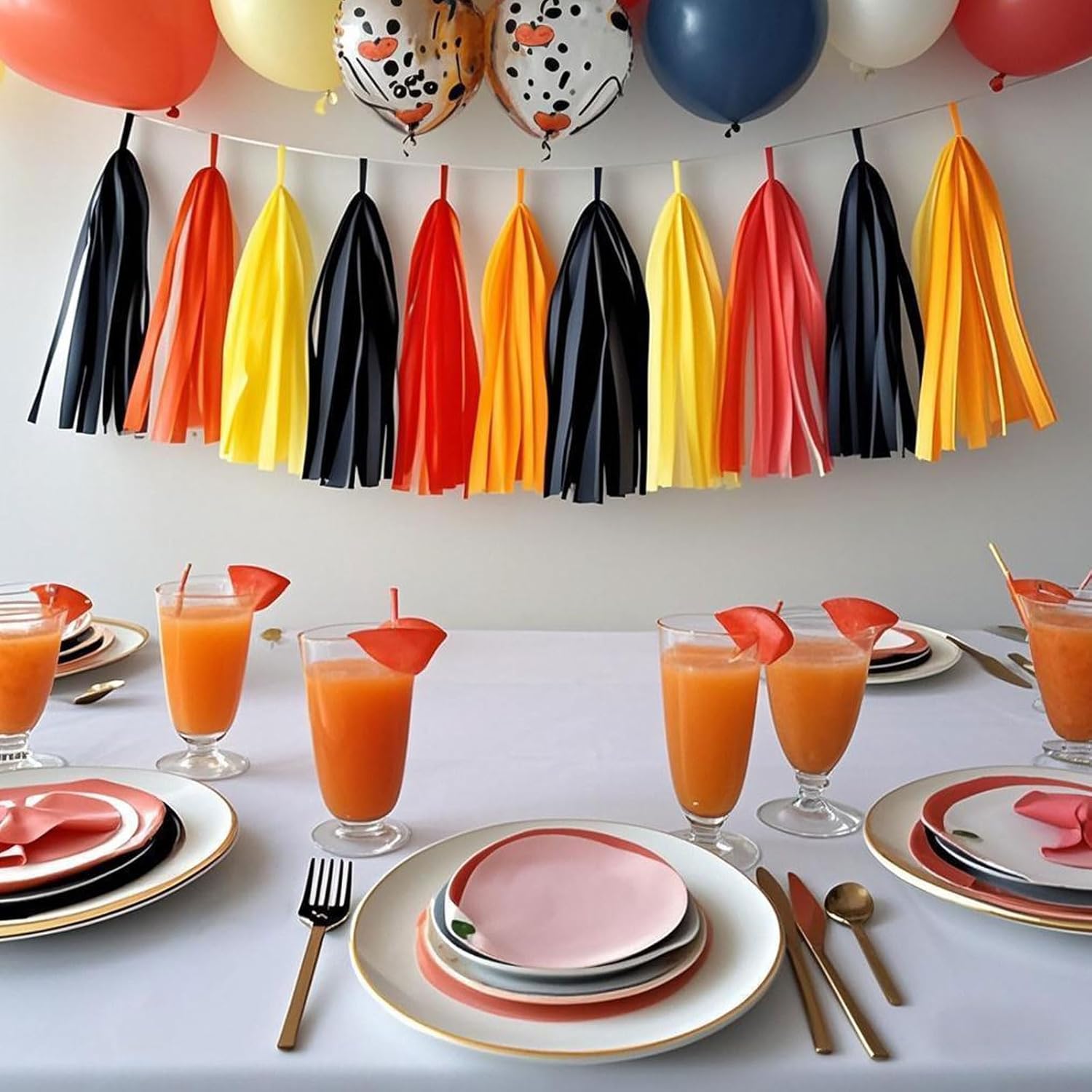 - CONTENTS: Complete set of 20 tissue paper tassels in fire truck theme colors - black, orange, red, and yellow for striking party decorations