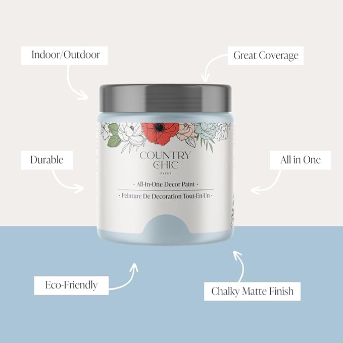 Country Chic All-in-One Chalk Paint for Furniture, Cabinets, Home Decor, Crafts, Eco-Friendly, Matte Finish, Built-In Primer & Top Coat for Wood, Metal - Little Bluebird (blue) Pint (16 oz)