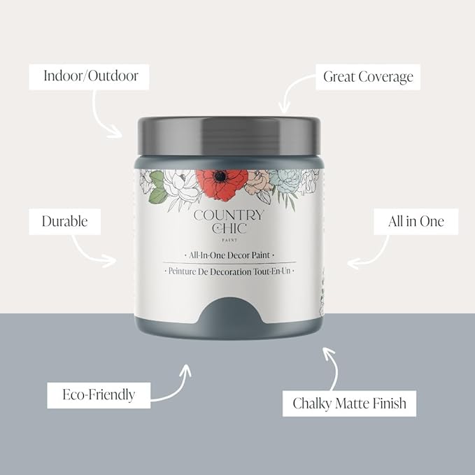 Country Chic All-in-One Chalk Paint for Furniture, Cabinets, Home Decor, Crafts, Eco-Friendly, Matte Finish, Built-In Primer & Top Coat for Wood, Metal - Daydreamer (blue) Pint (16 oz)