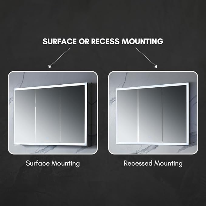 Blossom LED Lighted Mirror Medicine Cabinet, 48x32 Inch | Wall Mounted Recessed or Surface Bathroom LED Medicine Cabinet with Mirror, Makeup Mirror with Lights | Defogger, 3 Color Dimmer