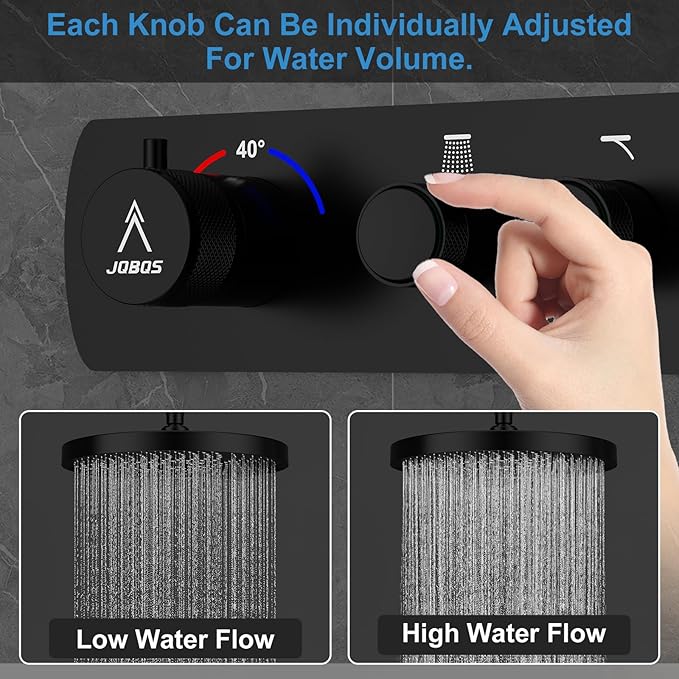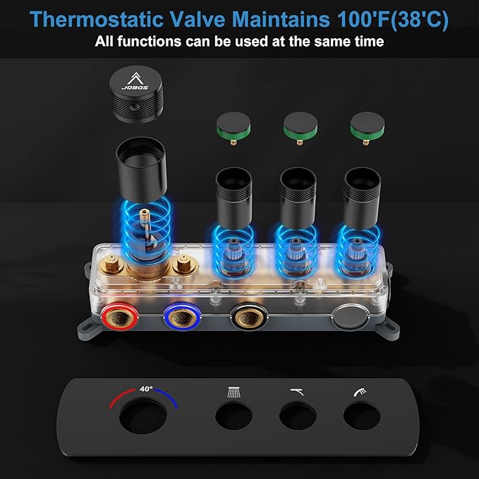 - 【Thermostatic Shower Faucet Set】Ntelligent thermostatic anti-scald thermostatic valve locks,no matter how the water pressure changes, it can always maintain the set temperature, maintaining a steady 100°F/38 °C, without worrying about the sudden increase in water temperature will burn you and your family, ideal for families with the elderly or children