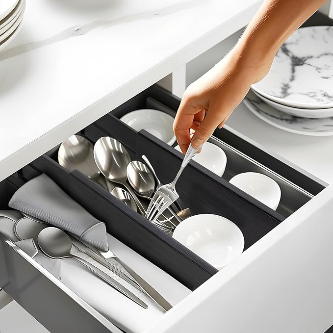 - Easy Installation & Removal: The expandable drawer divider features a built-in spring that keeps it securely in place. It's easy to adjust, so you can customize it to fit your changing needs. Ideal for sturdy drawers, ensuring your items stay organized