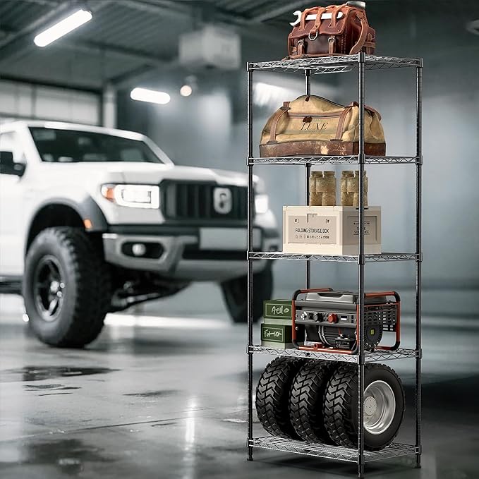 IZEUK 5-Tier Black Metal Storage Shelves, Adjustable Wire Shelving Unit for Kitchen, Bathroom, Pantry, Office, Garage, Organizer Wire Rack, 1250 lbs, 13.7" D x 23.6" W x 53.4" H
