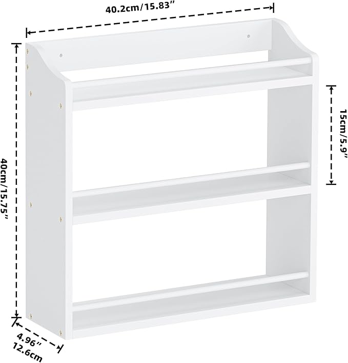 Spice Rack Wall Mounted, Freestanding Spice Organizer for Countertop, Bamboo Spice Storage Holder, for Kitchen Cupboard, Pantry, Bathroom (White)