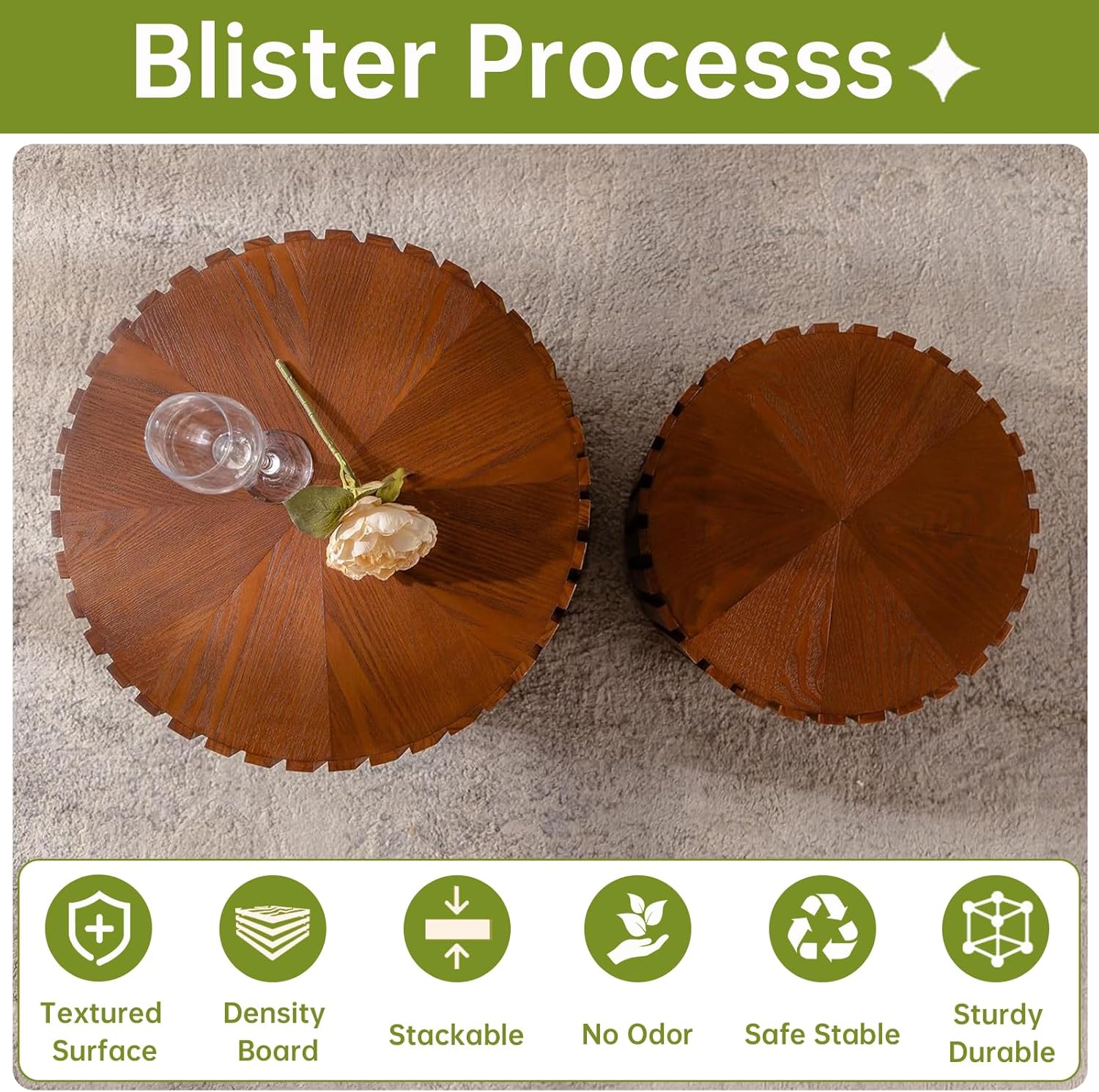 - [Built to Last, Designed for Safety] Made from High quality wood for lasting durability, this round coffee table nesting tables includes anti-slip foot pads to protect your floors and rounded edges for a safer, bump-free experience—perfect for homes with kids or pets!