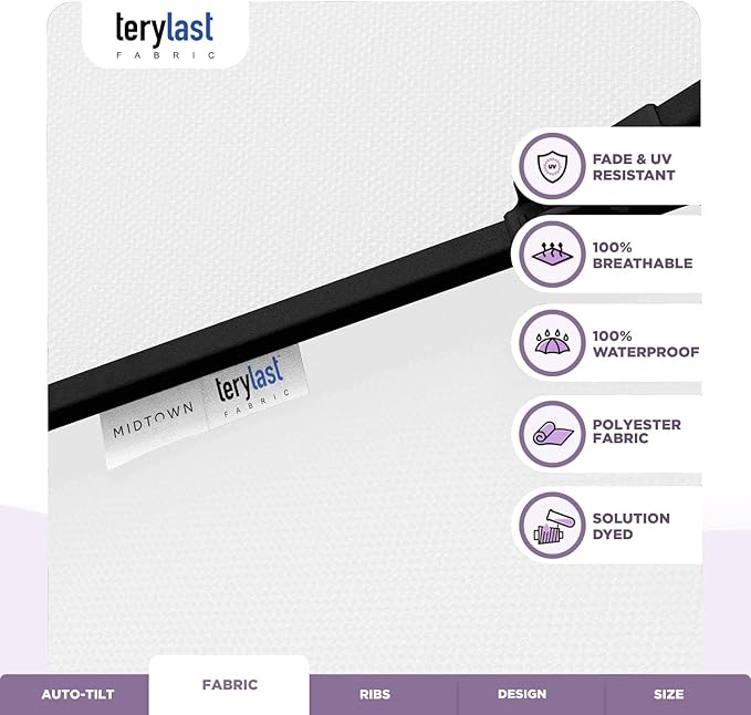 Midtown Umbrellas 10-Year-No-Fade - 9 Ft - UV Proof Ivory White Polyester Fabric - Umbrella Outdoor Patio, Auto-Tilt Aluminum Frame Patio Umbrella for Garden, Pool & Deck - Black Pole