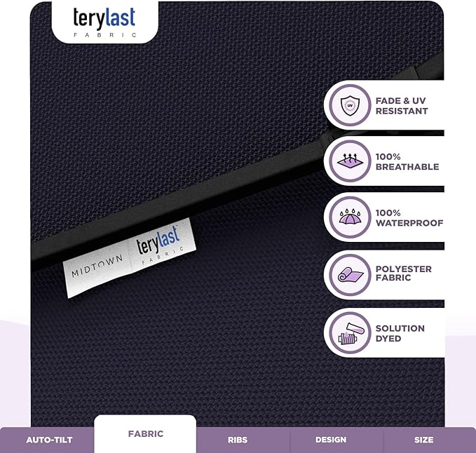 Midtown Umbrellas 10-Year-No-Fade - 8 Ft - UV Proof Navy Blue Polyester Fabric - Umbrella Outdoor Patio, Auto-Tilt Aluminum Frame Patio Umbrella for Garden, Pool & Deck - Black Pole