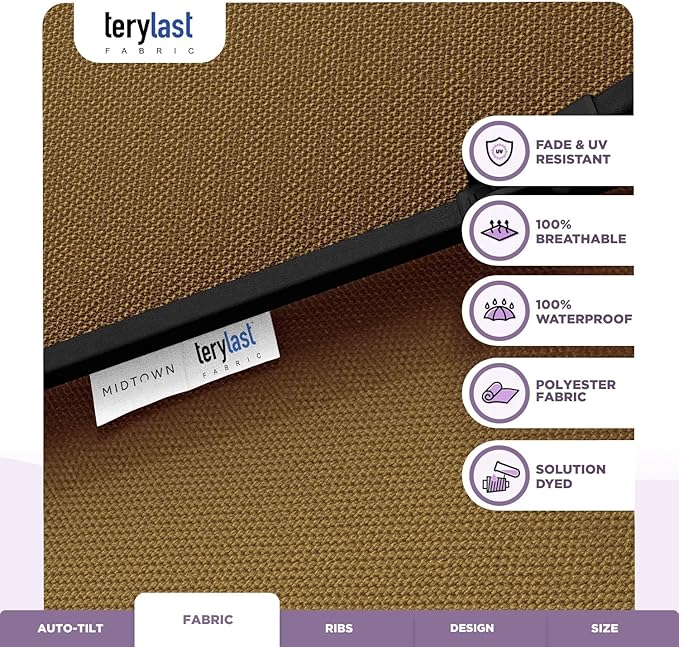 Midtown Umbrellas 10-Year-No-Fade - 10 Ft - UV Proof Sand (Tan) Polyester Fabric - Umbrella Outdoor Patio, Aluminum Frame Large Patio Umbrella for Garden, Pool & Deck - Black Pole