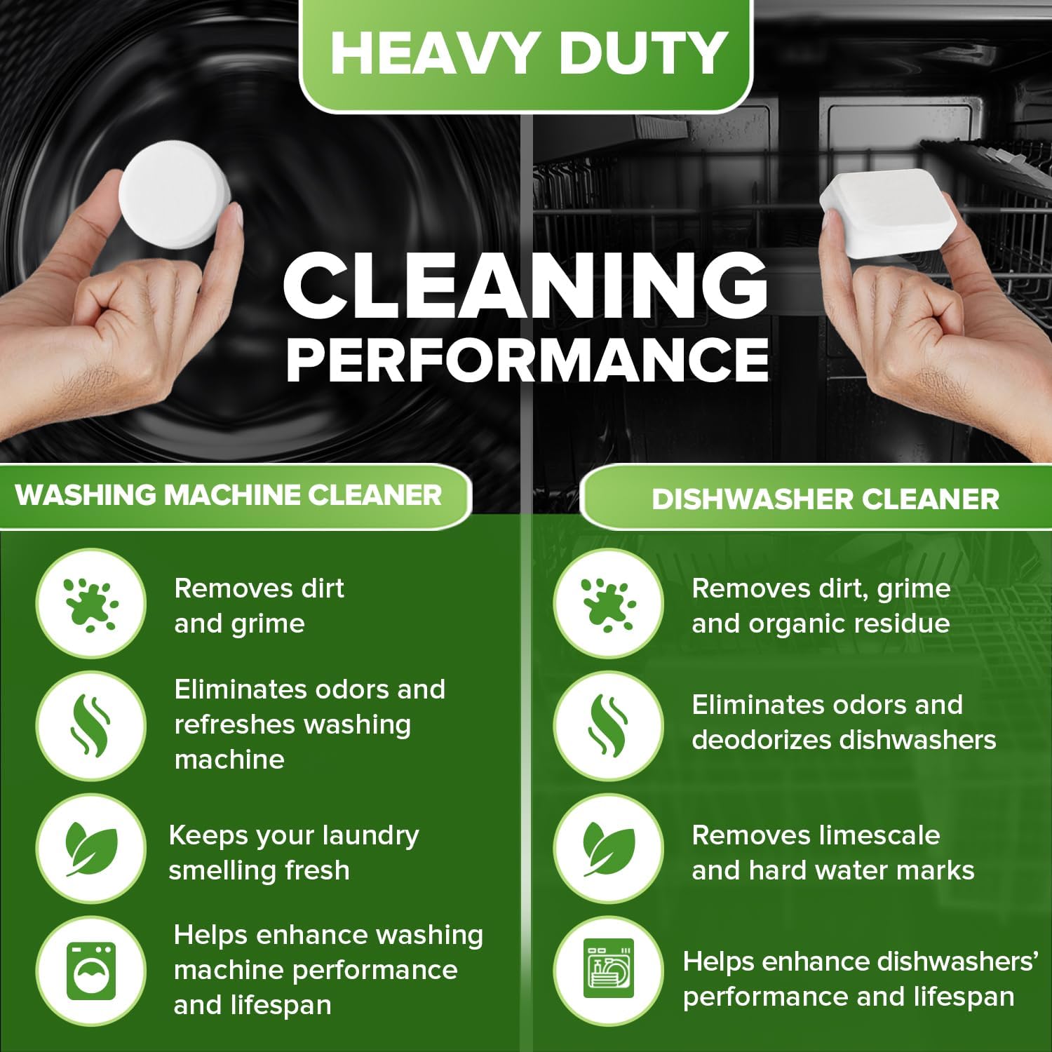 Washing Machine Cleaner + Dishwasher Cleaner Bundle - Heavy Duty Appliance Deep Cleaning, Descaling and Deodorizing