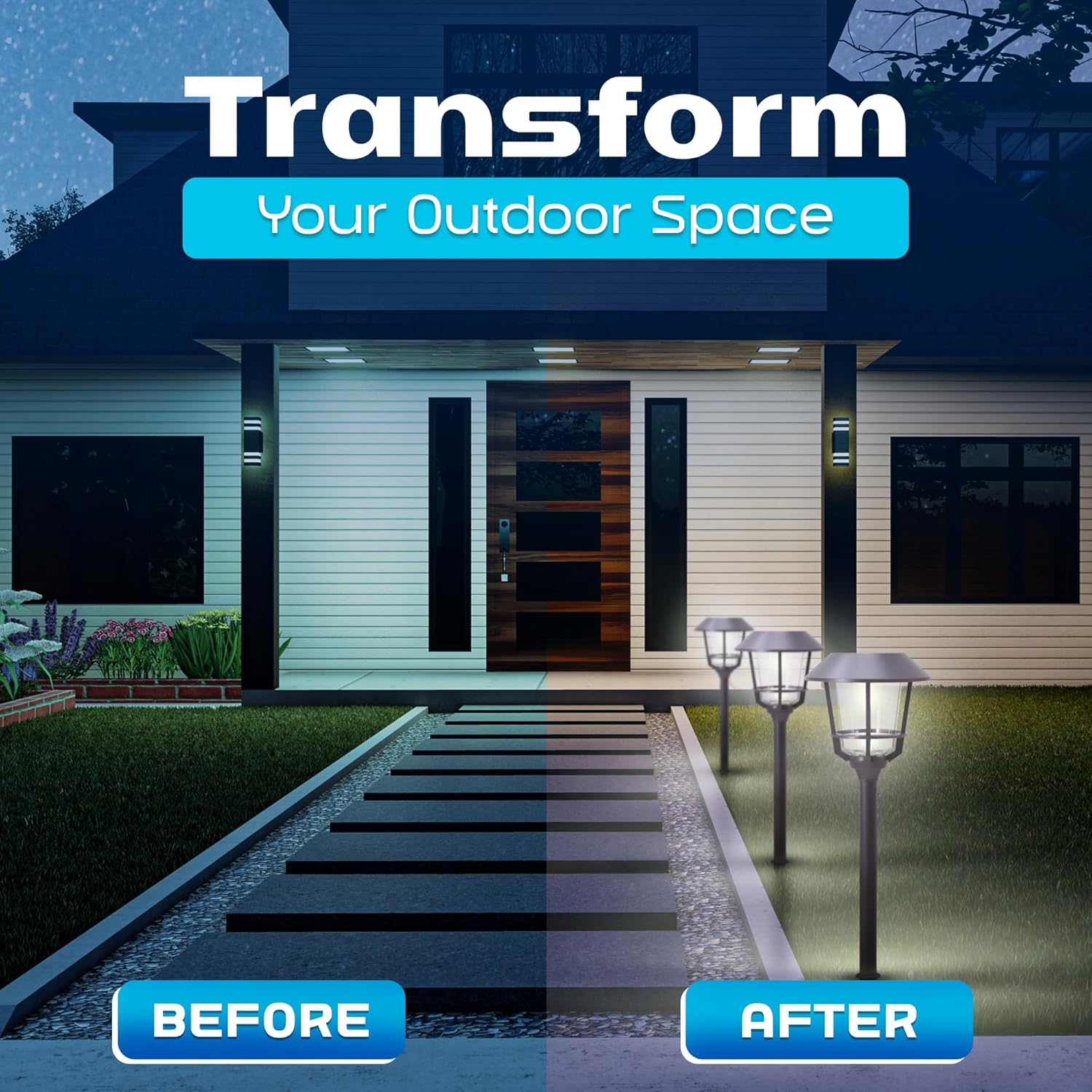 - IDEAL FOR PATHWAYS, GARDENS & MORE: Designed to elevate any outdoor space, our bright pathway solar lights are ideal for lining walkways, illuminating garden borders, accenting flower beds, or enhancing patios and driveways. Add charm, safety, and visibility wherever you need it.