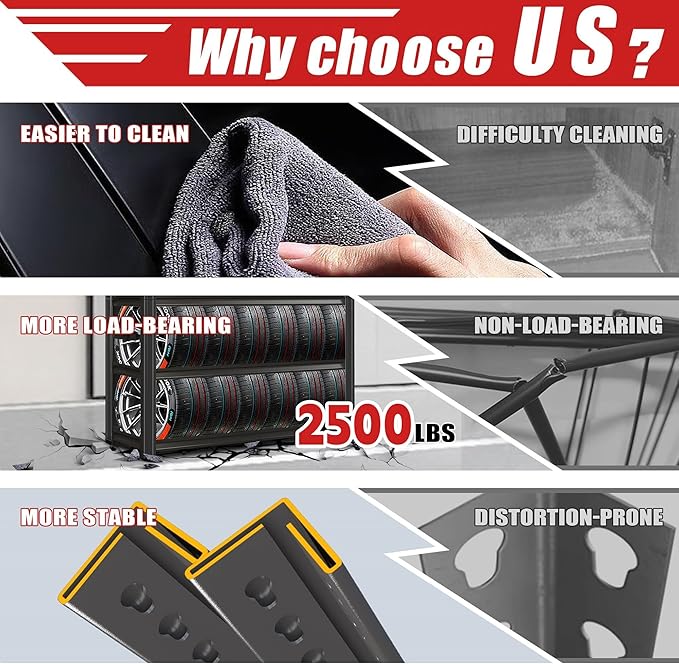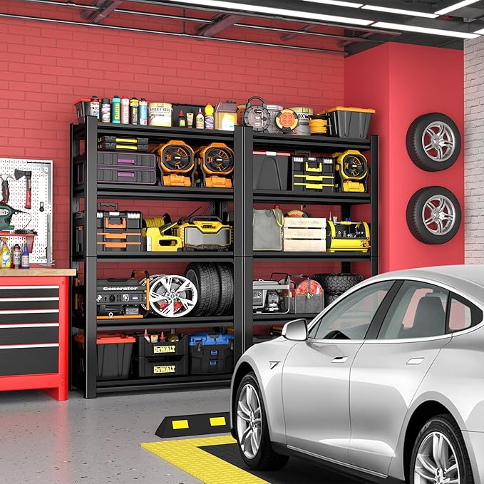 - 【Heavy-Duty 2500 lb Capacity】 Constructed with industrial-grade steel and reinforced crossbars, this 5-tier shelving unit supports up to 500 lbs per shelf (even distribution), ideal for storing heavy tools, automotive parts, or warehouse inventory without bending or wobbling.